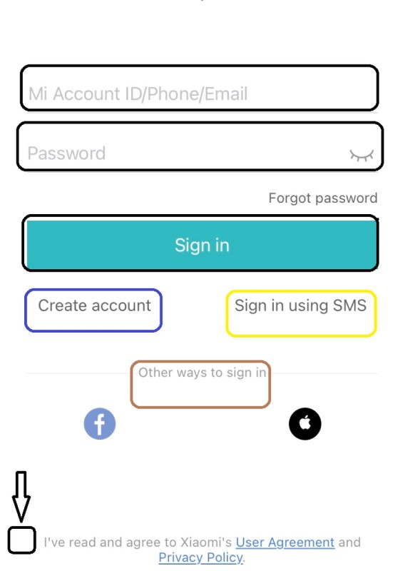 نکته : پس از هر یک از روش های فوق و پر کردن فیلد های مربوطه نیاز است تا مطابق شکل زیر تیک موافقتنامه برنامه را در پایین صفحه فعال کنید.