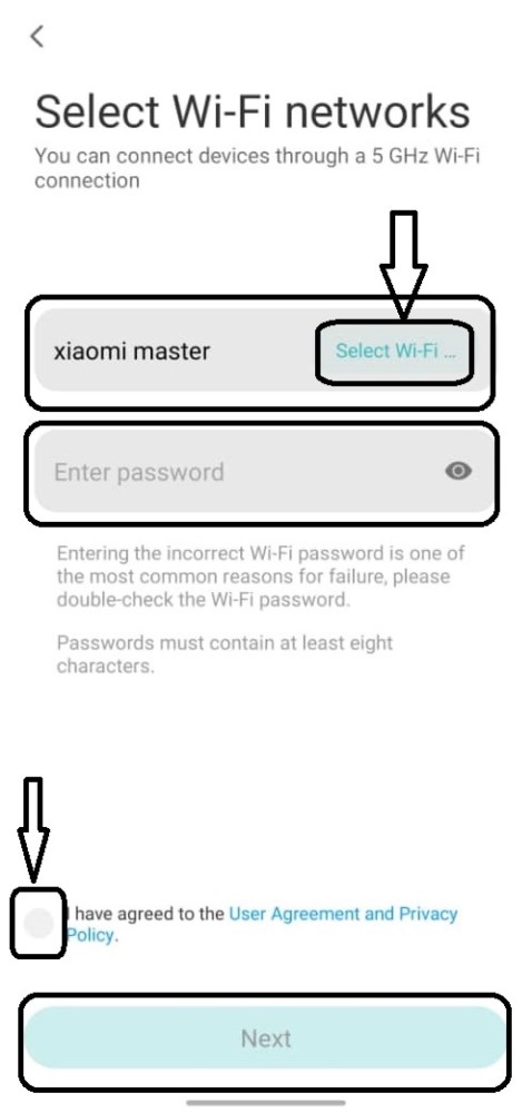 1- ابتدا از باکس بالا گزینه Select Wi-Fi را کلیک کرده و اینترنت را انتخاب می کنیم، مثلا در این شکل ما به اینترنت مجموعه Xiaomi master متصل شدیم.