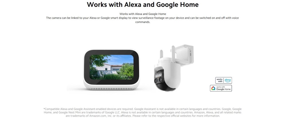دوربین هوشمند مداربسته شیائومی CW700s قابلیت پشتیبانی از دستیارهای صوتی Alexa و Google Assistant را دارد و این انمکان را برای شما فراهم کرده است که می توانید دوربین را به صفحه نمایش هوشمند الکسا یا گوگل متصل کنید تا فیلم های نظارتی روی دستگاه را مشاهده کنید و همچنین میتوانید با دستورات صوتی خاموش و روشن کنید.