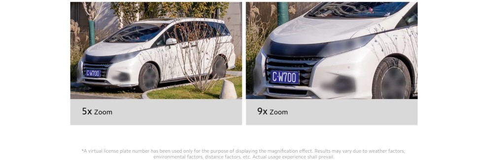 اما علاوه بر تمامی موارد فوق که ذکر شد این دوربین هوشمند با مجهز بودن به یک لنز تله فوتو و یک لنز زاویه باز از قابلیت زوم هیبریدی 9 برابری برخوردار شده است. قابلیت زوم هیبریدی 9 برابری این دوربین نظارتی بدون افت کیفیت یا پایین آمدن وضوح تصویر می باشد و مطابق تصویر فوق که مشاهده می کنید متوجه وضوح در حین زوم بالا خواهید شد. برای دوربین های فضای باز به دلیل تردد افراد و خودرو در یک محیط گسترده و لزوم وضوح بالا در تصویر و فیلمبرداری برای مشاهده جزئیات امری مهم و ویژگی برجسته محسوب می شود.